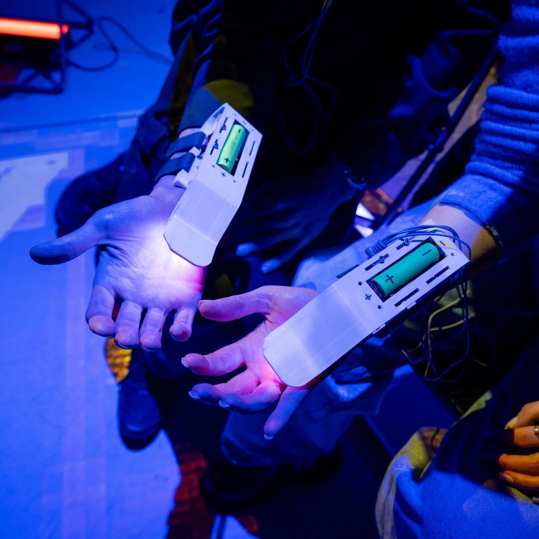 Through this shared bio-responsive system, participants experience the tension between individual agency and collective coordination. The work opens a space to reflect on what it means to connect with other humans today—through technology, through the body, and through shared presence. Within this setting, Rafaele Andrade performs a music composition using her self-made instrument (Knurl), interacting with the participants’ data and integrating their biological rhythms into the live sonic environment.